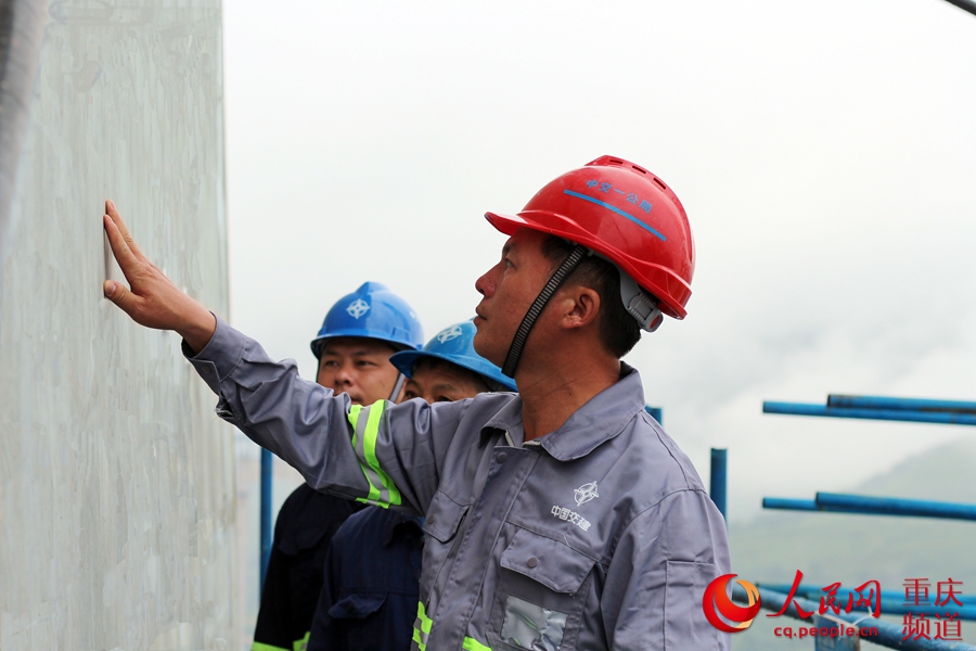 7月的一場(chǎng)暴雨來襲,177米高的重慶新田長(zhǎng)江大橋北岸主塔上江風(fēng)呼嘯。來自江蘇鹽城的施工協(xié)作隊(duì)伍負(fù)責(zé)人李廣輝,正帶領(lǐng)工人冒雨小心翼翼的拆除液壓爬模系統(tǒng)。